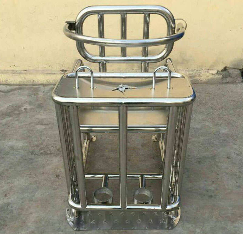 首先是方型的審訊椅,這款方型的審訊椅采用的是不銹鋼材質(zhì)的,優(yōu)點是不容易生銹,而且很牢固。